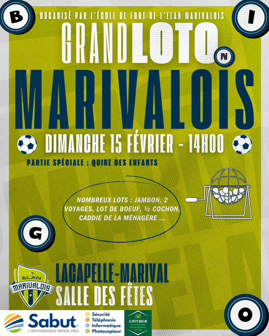 Grand Loto Quine Ecole de foot de l’ELAN MARIVALOIS !