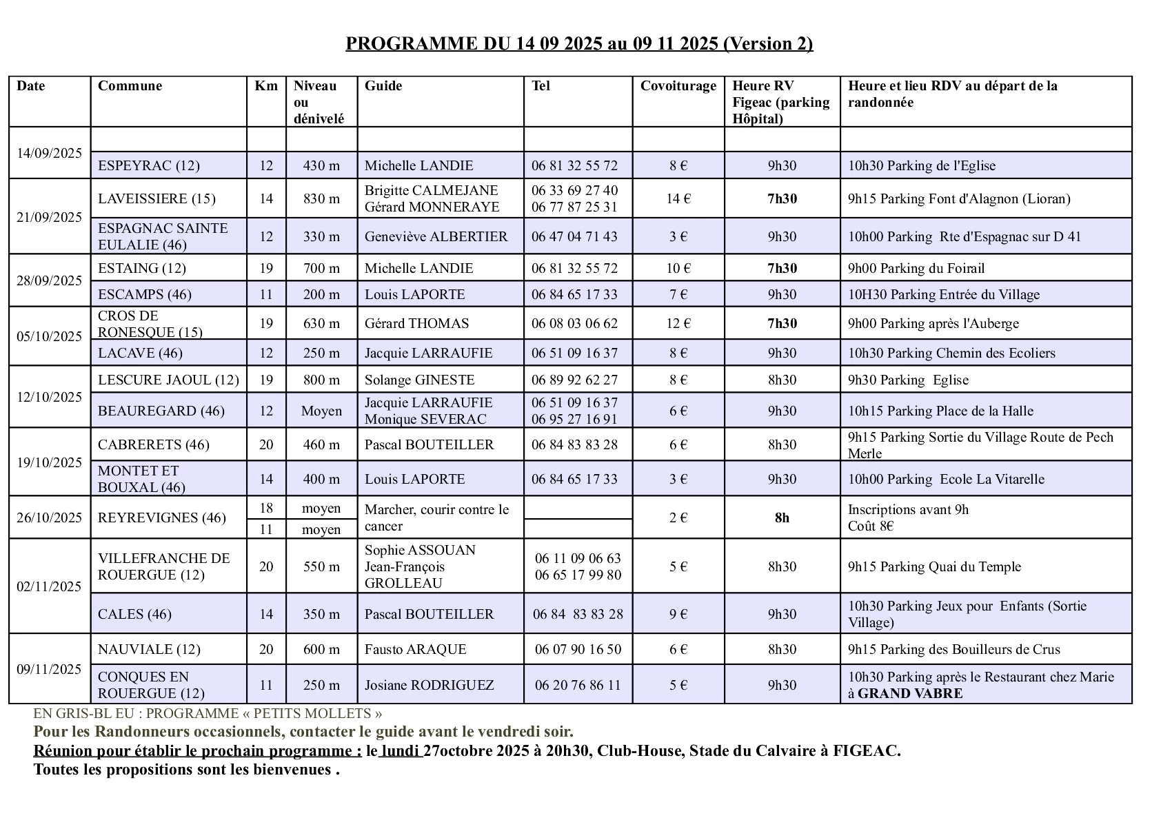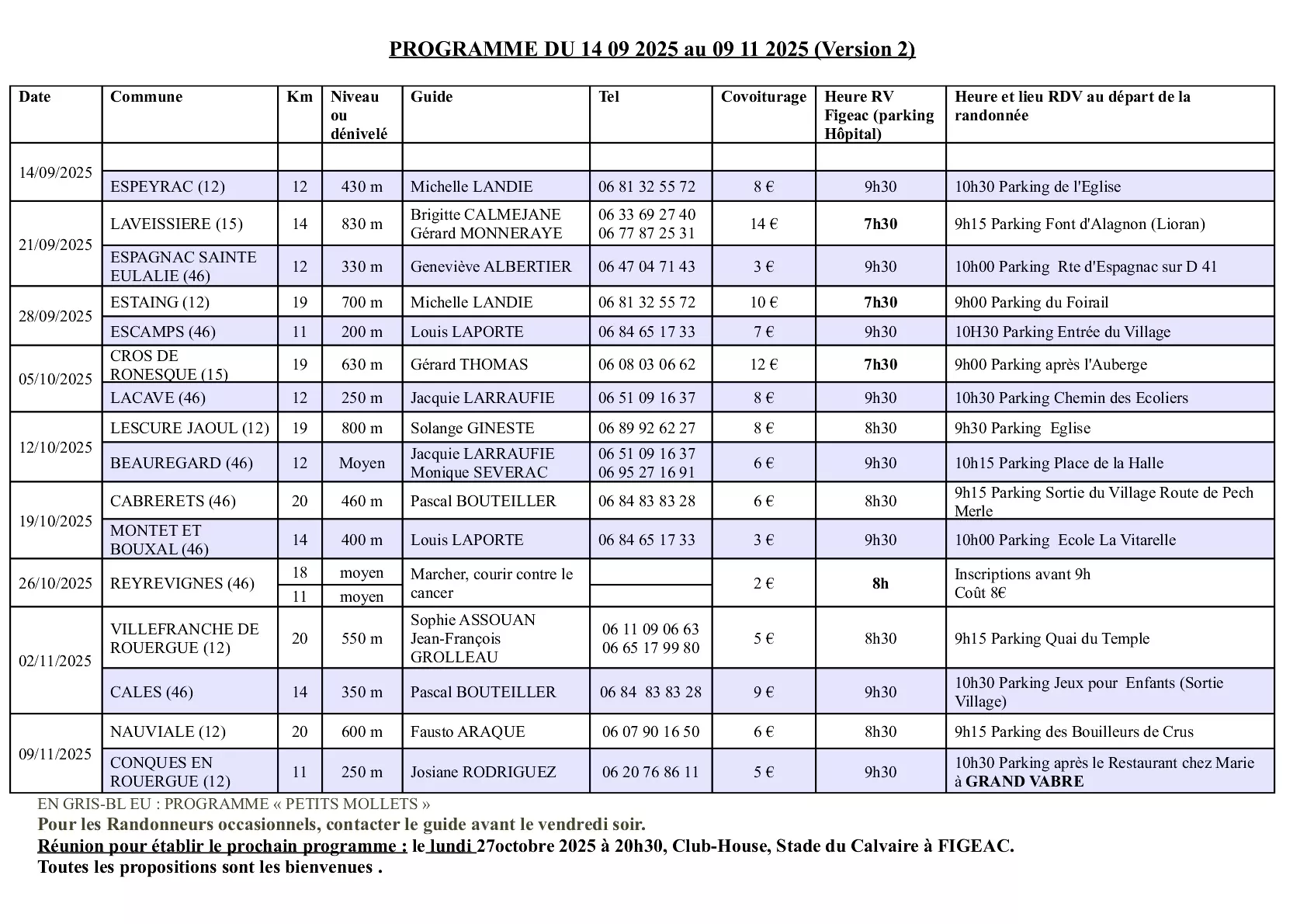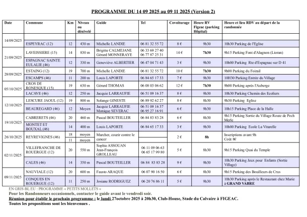 Version 2 : Une rando Petits Mollets est proposée le 12 Octobre 2025