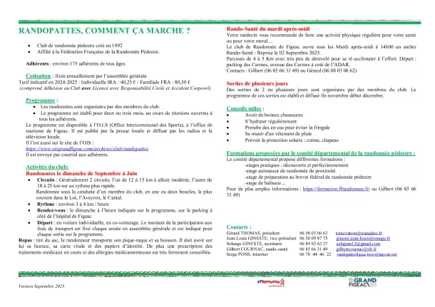 Les randos du club à partir du 14 septembre 2025