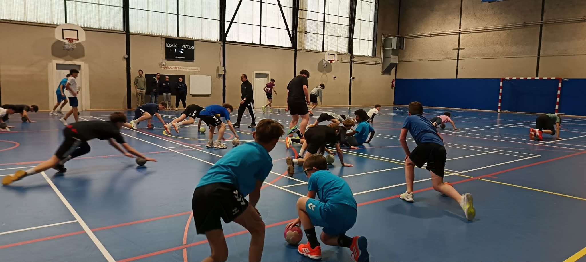 A la suite de cette conférence, Patrice Canayer s’est rendu au COSEC pour proposer un entrainement aux jeunes du Figeac Handball Club et d’autres clubs du département.